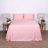 Front-facing view of bed made with pink Streak Bay bedding set. Bed with pink bedding and pillows in a bedroom setting. Side angle of pink Streak Bay bedding on bed next to wooden bedside table. Woman lying down in pink streaky bay bedding set, peering out from under sheet. Fitted sheet loop strap with size and corner indicator on Streak Bay (pink) sheet set. Pink Streaky Bay bamboo-cotton fabric. Woman lying down in pink Streaky Bay bedding set. Close-up of Streak Bay fitted sheet elastic on mattress. Loop label showing “Bottom Right” and “Double” on Streak Bay fitted sheet. Pink Streak Bay bedding neatly tucked on double bed with wooden frame. Close-up of single Streak Bay pillowcase with invisible zipper pull. Two pink Streak Bay pillowcases with concealed zippers on a matching bed.